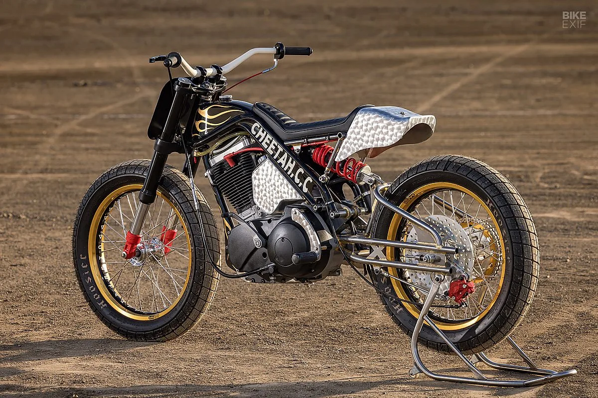 A további kézzel készített fém alkatrészeket a kontrasztos hatás elérése érdekében örvény mintás felülettel látták el. A Cheetah WP Suspension alkatrészeket, 19 hüvelykes Sun felniket és Hosier flat track gumiabroncsokat is beépített. A motorra továbbá széles nyílású Dell’Orto karburátort és egyedi kipufogócsövet szereltek Ixil hangtompítóval.